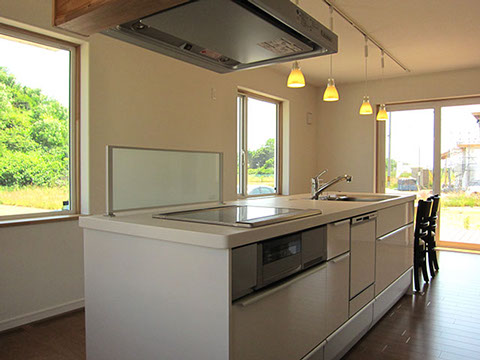 LDKの中心であるキッチンは、二人で立ってもゆったりの調理スペースと、